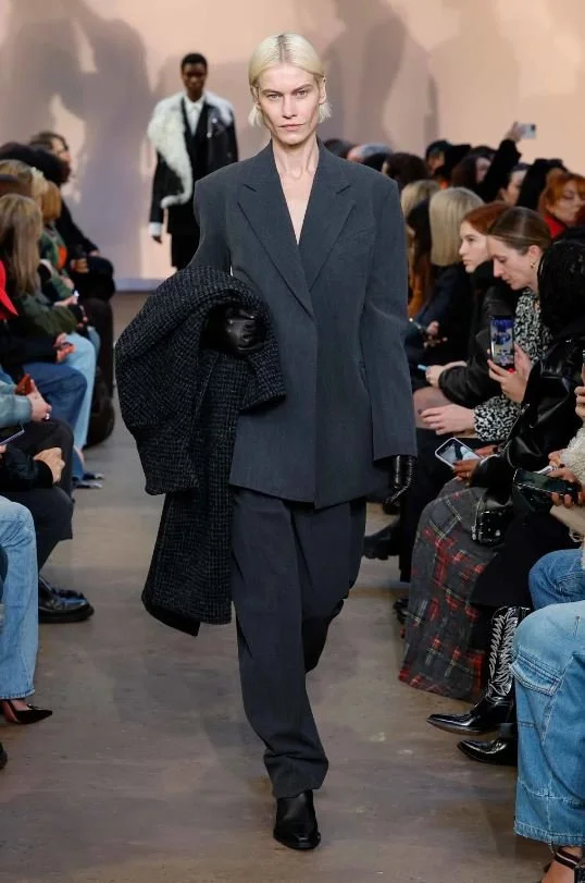 A paradoxical assessment of masculinity and femininity stands unwavering at a tangent of normalcy, cementing minimalism, extreme proportions, and soft key colors as the manifesto of normcore. Gender fluid traction in the fashion industry has geared an identity in the in-between, celebrating silhouettes such as the trench coat, oversized blazer, and fine knits in the overwhelming use of key color Sustained Grey. In an accelerated environment driven by toxic positivity in technology, normcore offers a realistic, toned down appeal that juxtaposes overstimulation.