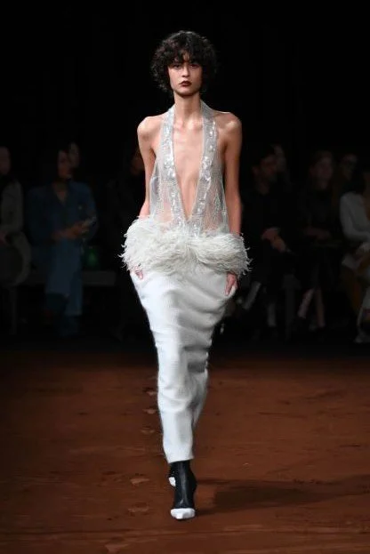 The hypersexualized, misandrous theme of barely-there dressing retains consistency throughout the fall season. Nensi Dojaka remains the key contributor to sheer dressing, motivating established houses Fendi and Prada to move into a textural exploration. Blumarine carried a 2000s wave of iridescent, see-through dressing, and a wave of mini skirt silhouettes dictated the FW23 season. Key colors Digital Lavender and Apricot Crush heightened the sex-positive agenda that remains a key contributor to the overall consumer mood shift towards resiliency and self-determination in an era of realignment.