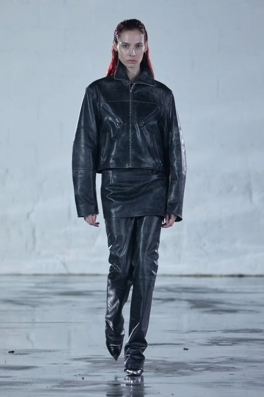Grunge's latest development is a celebration of the key sector that has historically driven the namesake components of Grunge, including leather, denim, and the heritage of a standoff attitude—the biker. Complimentary to this attitude was the addition of call-to-action motifs celebrating discrepancy and rebellion, including Mowalola's "sue me" tags. Look to Helmut Lang, Simkhai, and Heron Preston for key silhouettes of the biker jacket, mini skirt, and ample use of leather.