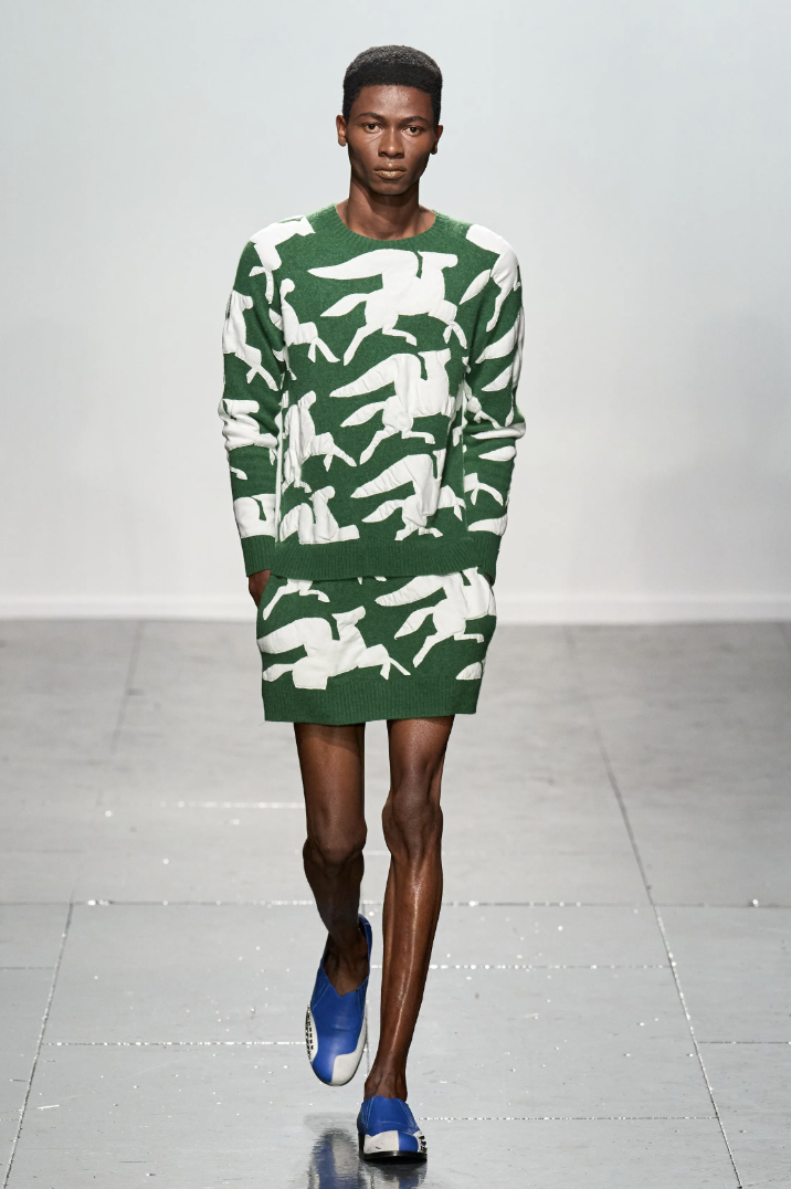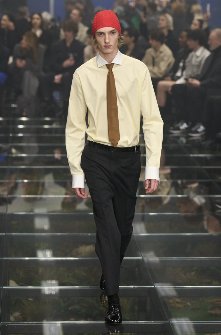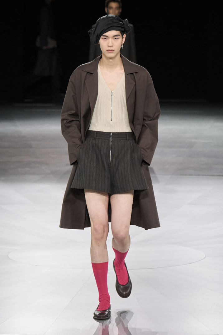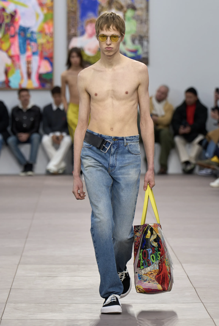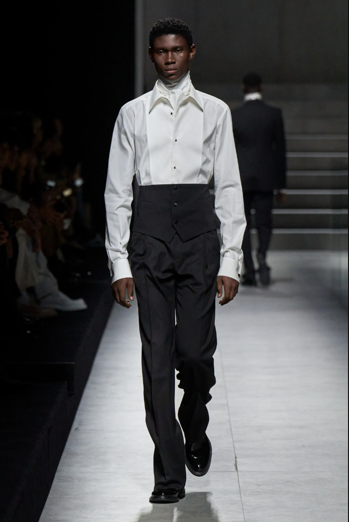 The man of the moment is babygirl, our androgynously coded it-boy. Eschewing the soft masculine formula cross-media, babygirl prompts us to question the cis-female hottie archetype in favor of the genderless, sensitive, quirky, Wes-Anderson-Luca-Guadagnino-built man who has a fandom in a chokehold. Who is the babygirl on the runway? Well, we created this monster. They are the etymology of a genderless radicalism in fashion that has matured into a generic understanding that it’s not a jumpscare that menswear can be feminine anymore—it just is. Propositions have turned into an intentional foundation as Fendi throws in a pleated skirt, and round and rounder silhouettes with frill fill Stefan Cooke and Willy Chavarria’s runway. Mary Jane at Dior Homme is a staple, and we go so far as to make our babygirl sexy at Burberry, YSL, and Ludovic de Saint Sernin, where every look contains a sheer or low-cut moment. Further, Mugler, Marni, Vestments, Simone Rocha, and Collina Strada—it’s just not funny nor notable anymore how fluidity has melded into fashion. It is, however, important to indoctrinate going forward, especially when it goes hand in hand with a traditionalist redux found elsewhere in FW24.