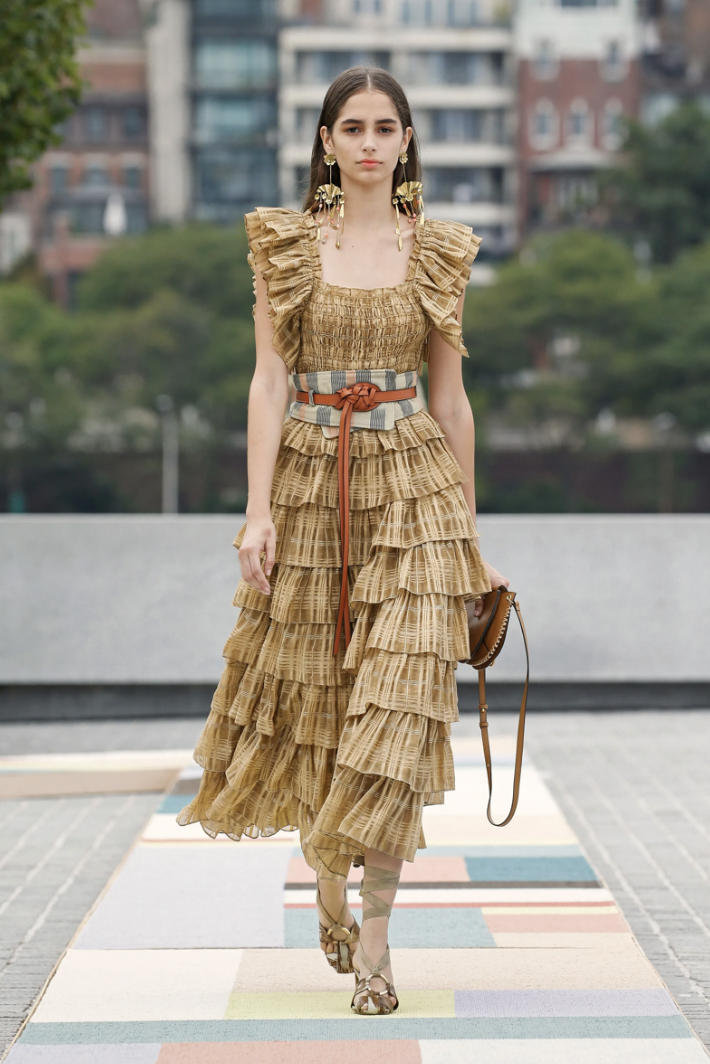 Renewed love for the outdoors inspires a capsule of comfort through throw-on dressing. Terracotta, Mango Sorbet and Bark are seen in nature-inspired prints, checks, and monochrome stripes. The femme jumpsuit dictates the new look of holiday seen at Missing Caption and Ganni.